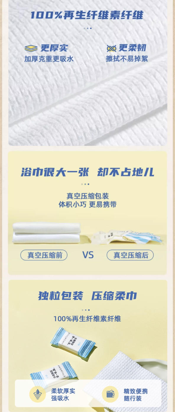 - 压缩毛巾5粒/包+浴巾*1+马桶套*1+一次性内裤*1